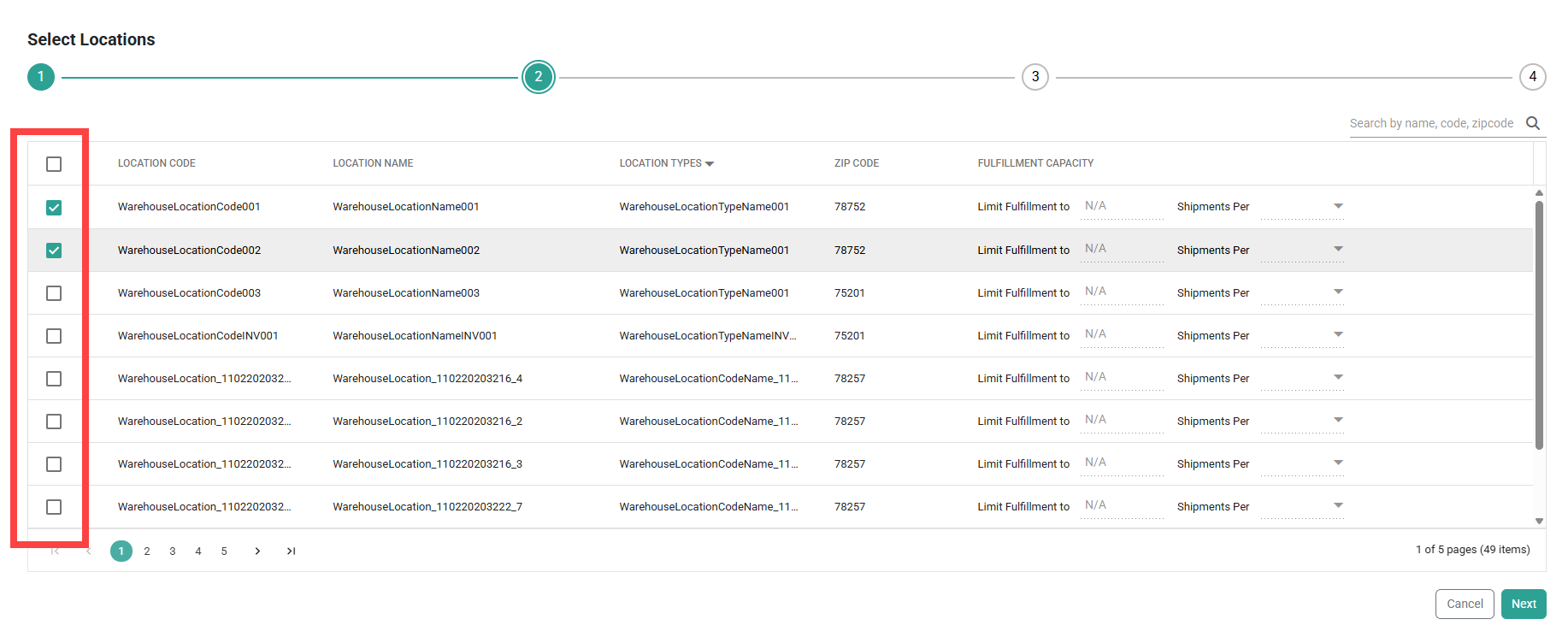 - Select locations from the list by clicking their checkboxes. Use the search bar in the top right to quickly find specific locations if needed.