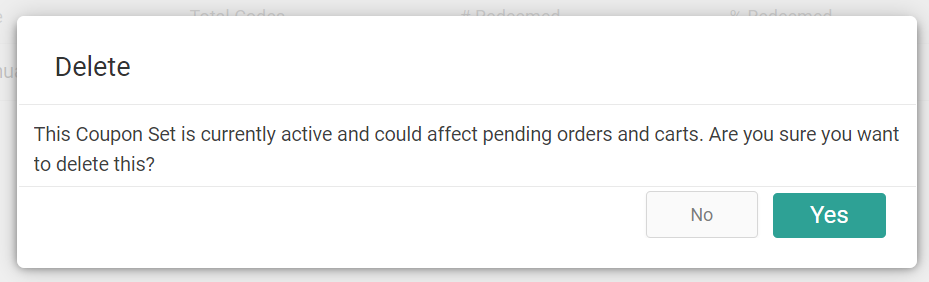 - If the coupon set is currently in its active date range, a pop-up will ask you to confirm. Click Yes.