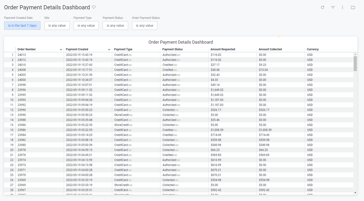 | Payment Created Date | Limit results to only order payments created within this time range. | Past seven days |